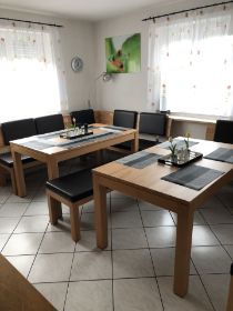 bis 5 Personen, 80 qm2, 4 Zimmer Essküche, mit Eckbank und Küchenzeile Wohnzimmer mit Sat TV 1. Schlafzimmer mit Doppelbett 1,90 x 2,00 und ein 3. Bett 0,90 x 2,00 2. Schlafzimmer mit Doppelbett 1,90 x 2,00 Badezimmer mit Badewanne integriert Dusche separat WC